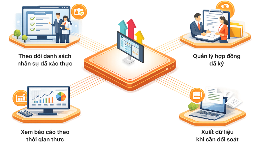 Doanh nghiệp có thể:- Theo dõi danh sách nhân sự đã xác thực